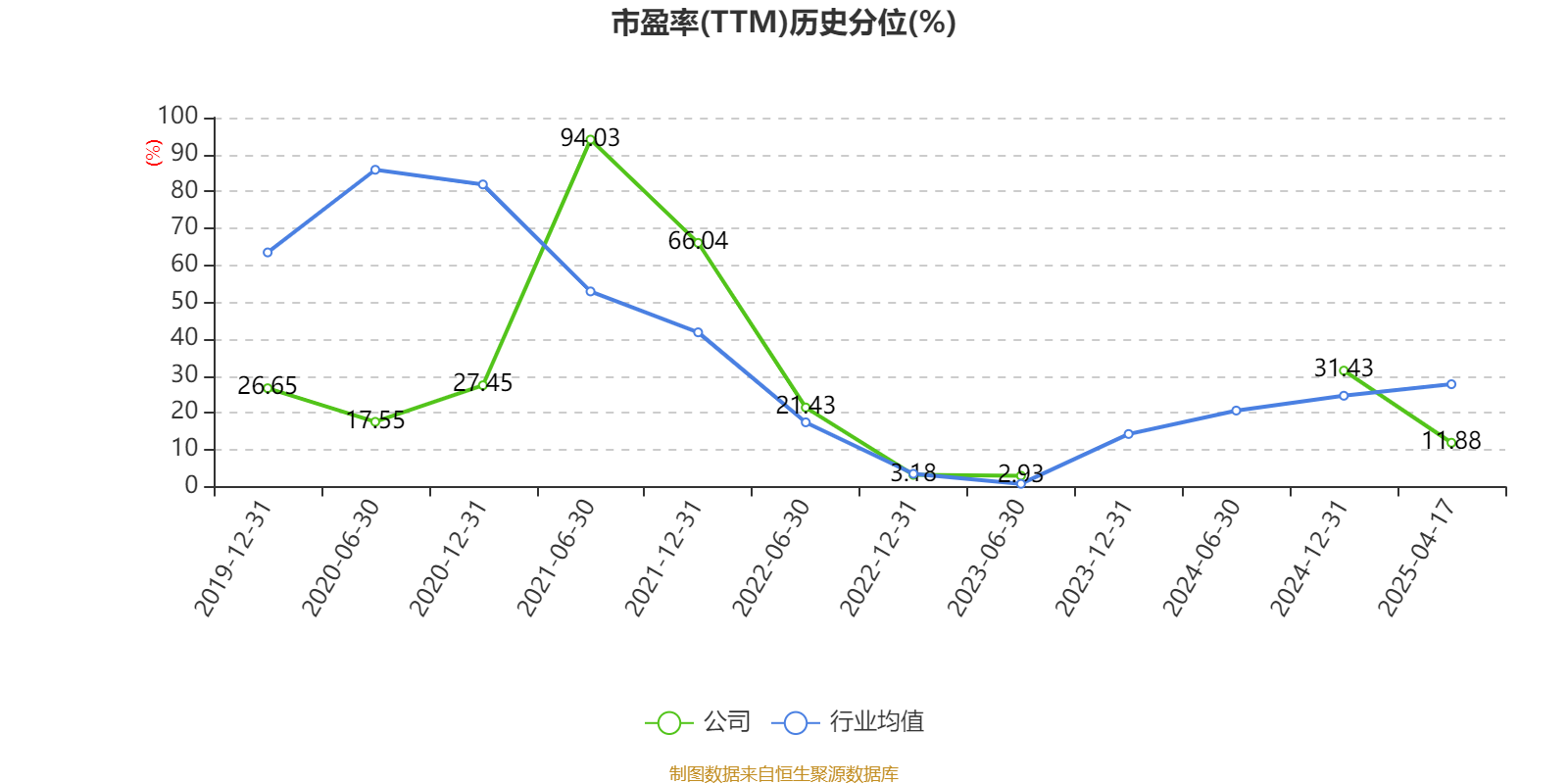 市盈率、市净率为负时,不显示当期分位数,会导致折线图中断。