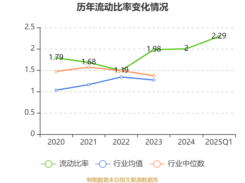 2025年第一季度,公司流动比率为2.29,速动比率为1.47。