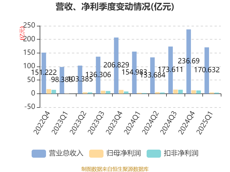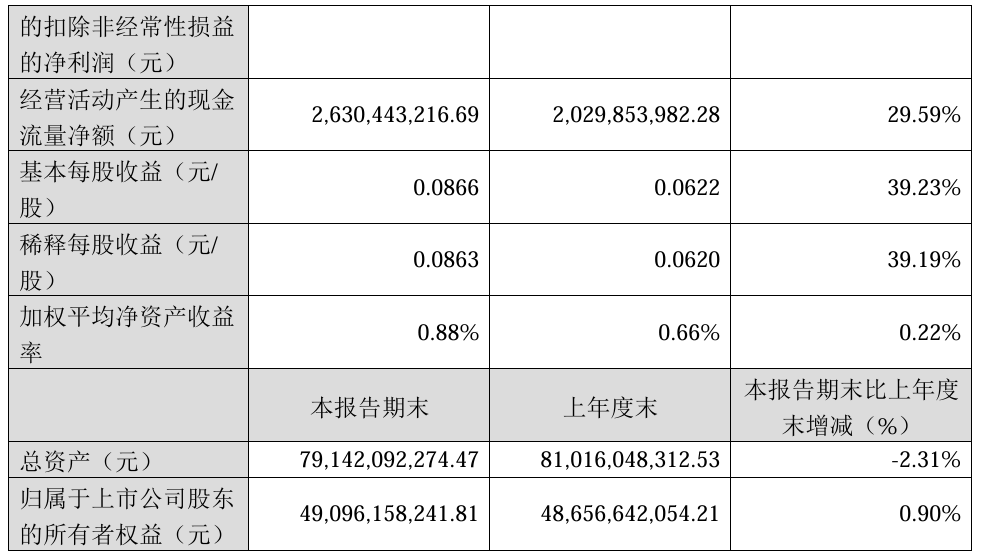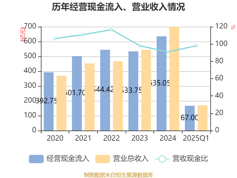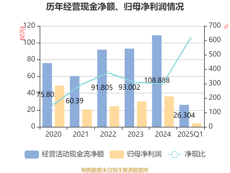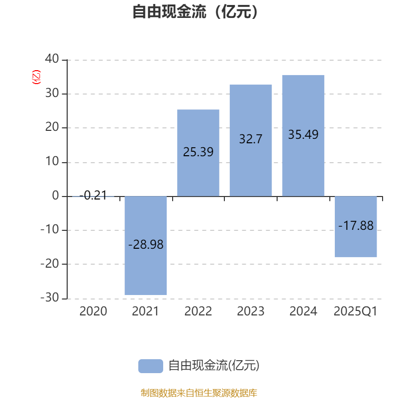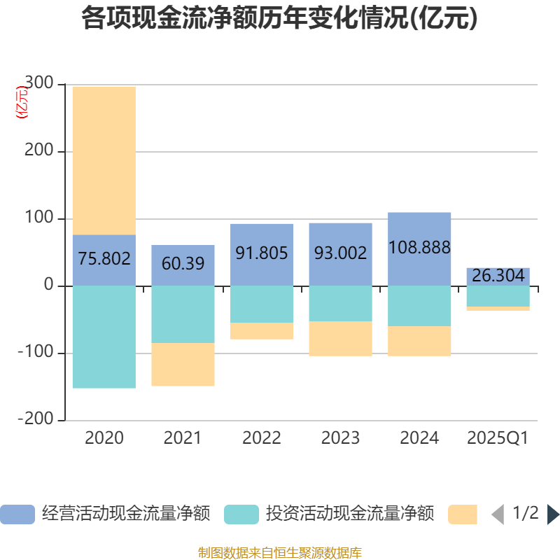 截至2025年一季度末,公司经营活动现金流净额为26.3亿元,同比增长29.59%;筹资活动现金流净额-6.2亿元,同比增加9.16亿元;投资活动现金流净额-31.25亿元,上年同期为-11.45亿元。