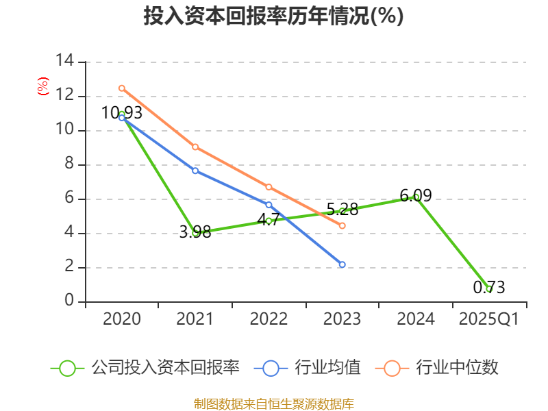 盈利能力方面, 2025年一季度公司加权平均净资产收益率为0.88%,同比上升0.22个百分点。公司2025年第一季度投入资本回报率为0.73%,较上年同期上升0.28个百分点。