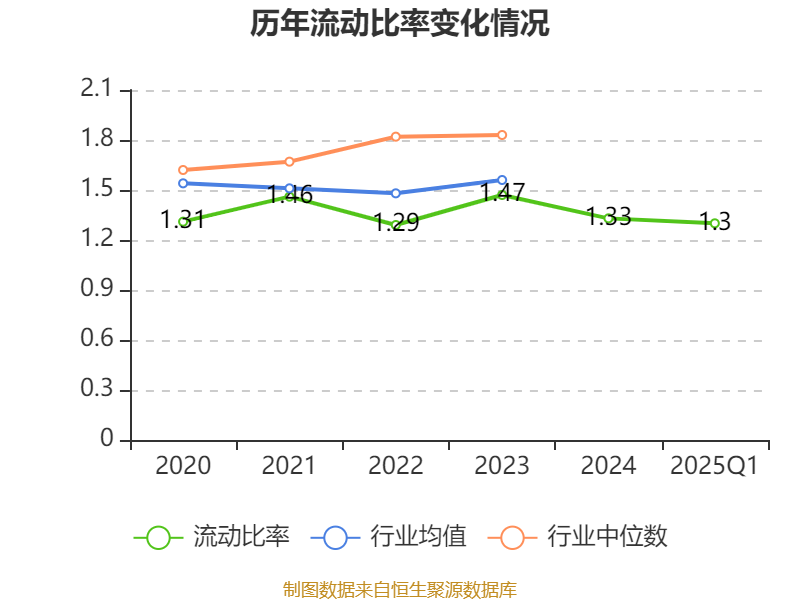 2025年第一季度,公司流动比率为1.3,速动比率为1。