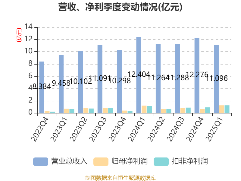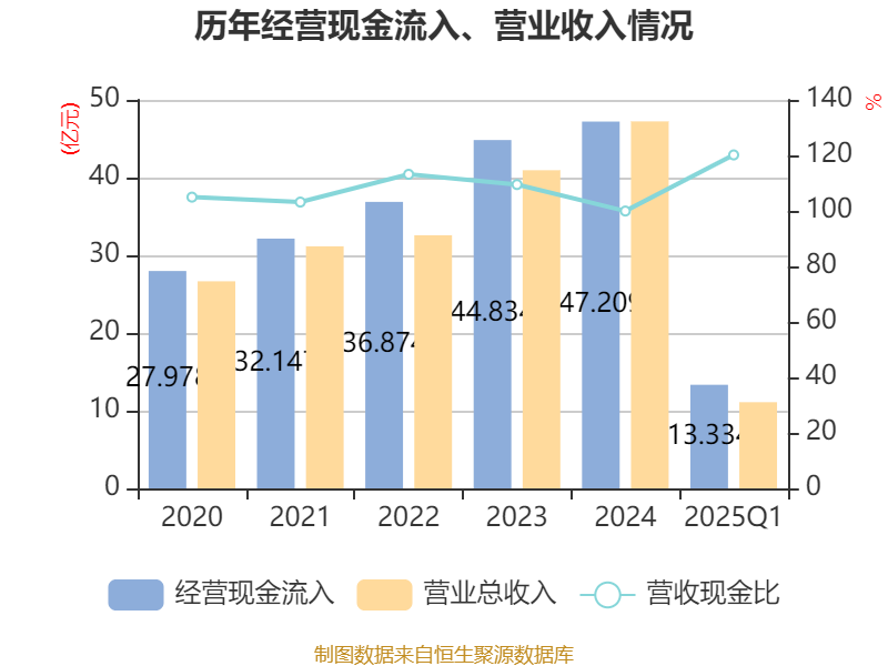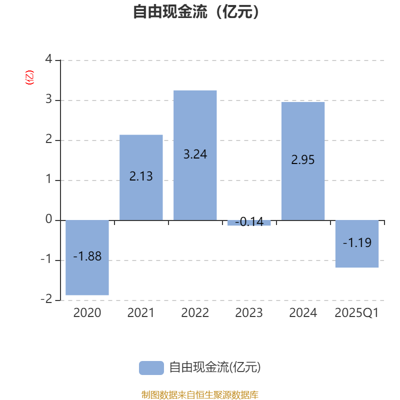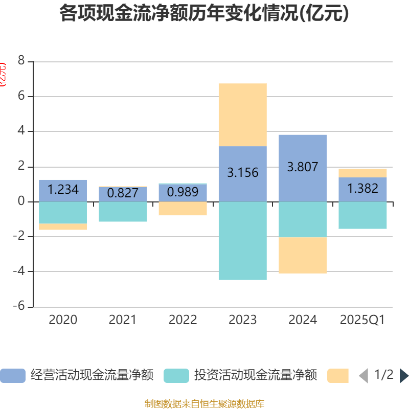 截至2025年一季度末,公司经营活动现金流净额为1.38亿元,同比下降31.59%;筹资活动现金流净额4884.37万元,同比增加3053.46万元;投资活动现金流净额-1.55亿元,上年同期为-999.43万元。