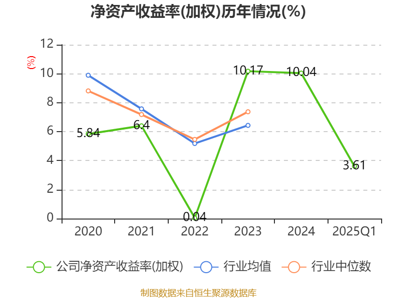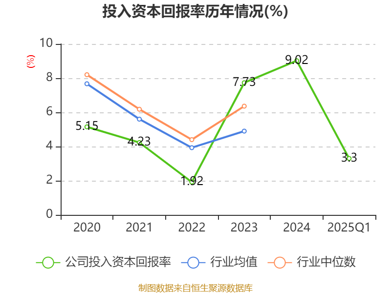 盈利能力方面, 2025年一季度公司加权平均净资产收益率为3.61%,同比下降0.01个百分点。公司2025年第一季度投入资本回报率为3.3%,较上年同期持平。