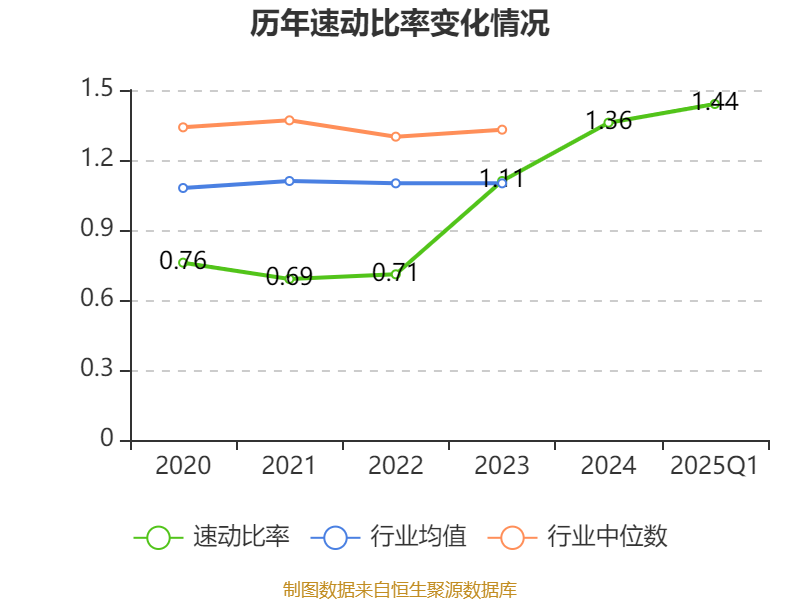 2025年第一季度,公司流动比率为1.86,速动比率为1.44。