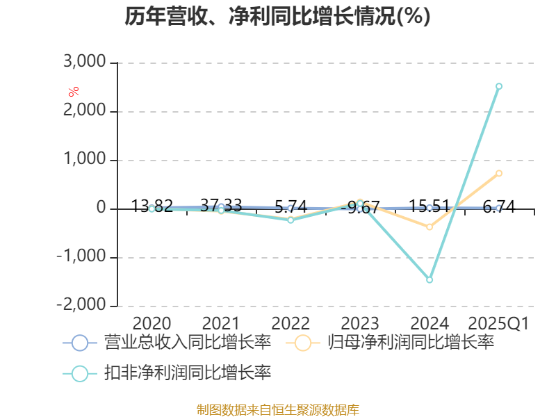 负债重大变化方面,截至2025年一季度末,公司短期借款较上年末减少13.61%,占公司总资产比重下降2.74个百分点;长期借款较上年末增加16.12%,占公司总资产比重上升1.21个百分点;应付票据及应付账款较上年末增加6.71%,占公司总资产比重上升0.86个百分点;长期递延收益较上年末增加22.61%,占公司总资产比重上升0.83个百分点。