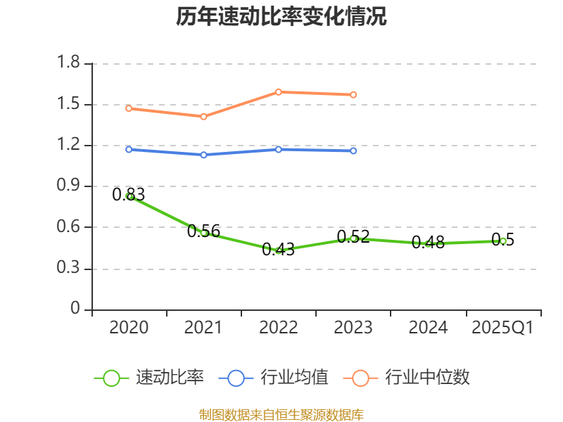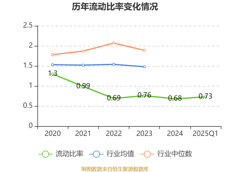 2025年第一季度,公司流动比率为0.73,速动比率为0.5。