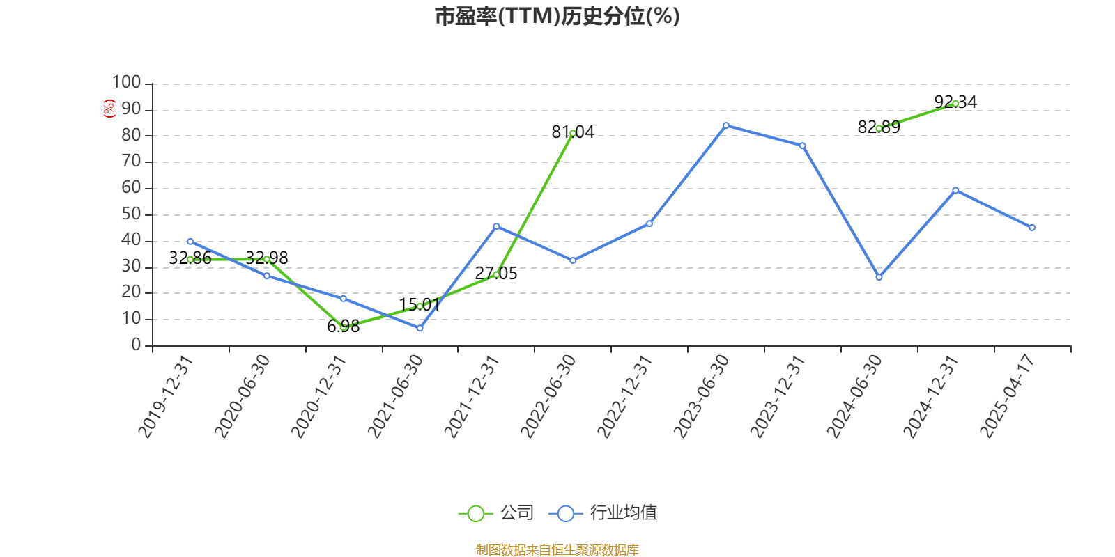 市盈率、市净率为负时,不显示当期分位数,会导致折线图中断。