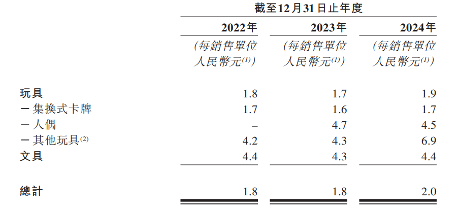 卡游的集换式卡牌贡献绝大多数收入。2022-2024年,公司来自销售集换式卡牌的收入分别为39.3亿元、21.8亿元及82亿元,2024年来自“其他玩具+人偶”及文具产品的收入占比分别为13.4%及5.1%。