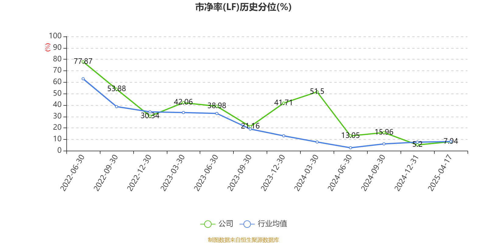 市盈率、市净率为负时,不显示当期分位数,会导致折线图中断。