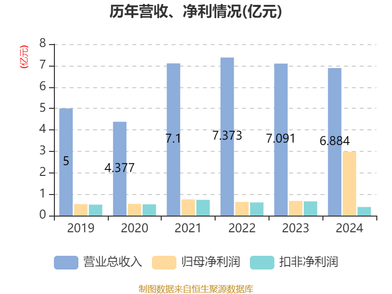 中证智能财讯江天化学(300927)4月18日披露2024年年度报告。2024年,公司实现营业总收入6.88亿元,同比下降2.92%;归母净利润2.98亿元,同比增长334.35%;扣非净利润4008.71万元,同比下降39.48%;经营活动产生的现金流量净额为1632.87万元,同比下降81.27%;报告期内,江天化学基本每股收益为2.0625元,加权平均净资产收益率为36.11%。公司2024年度分配预案为:拟向全体股东每10股派现0.9元(含税)。