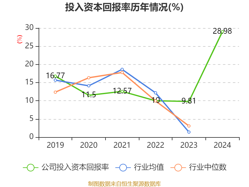 数据显示,2024年公司加权平均净资产收益率为36.11%,较上年同期上升25.75个百分点。公司2024年投入资本回报率为28.98%,较上年同期上升19.17个百分点。