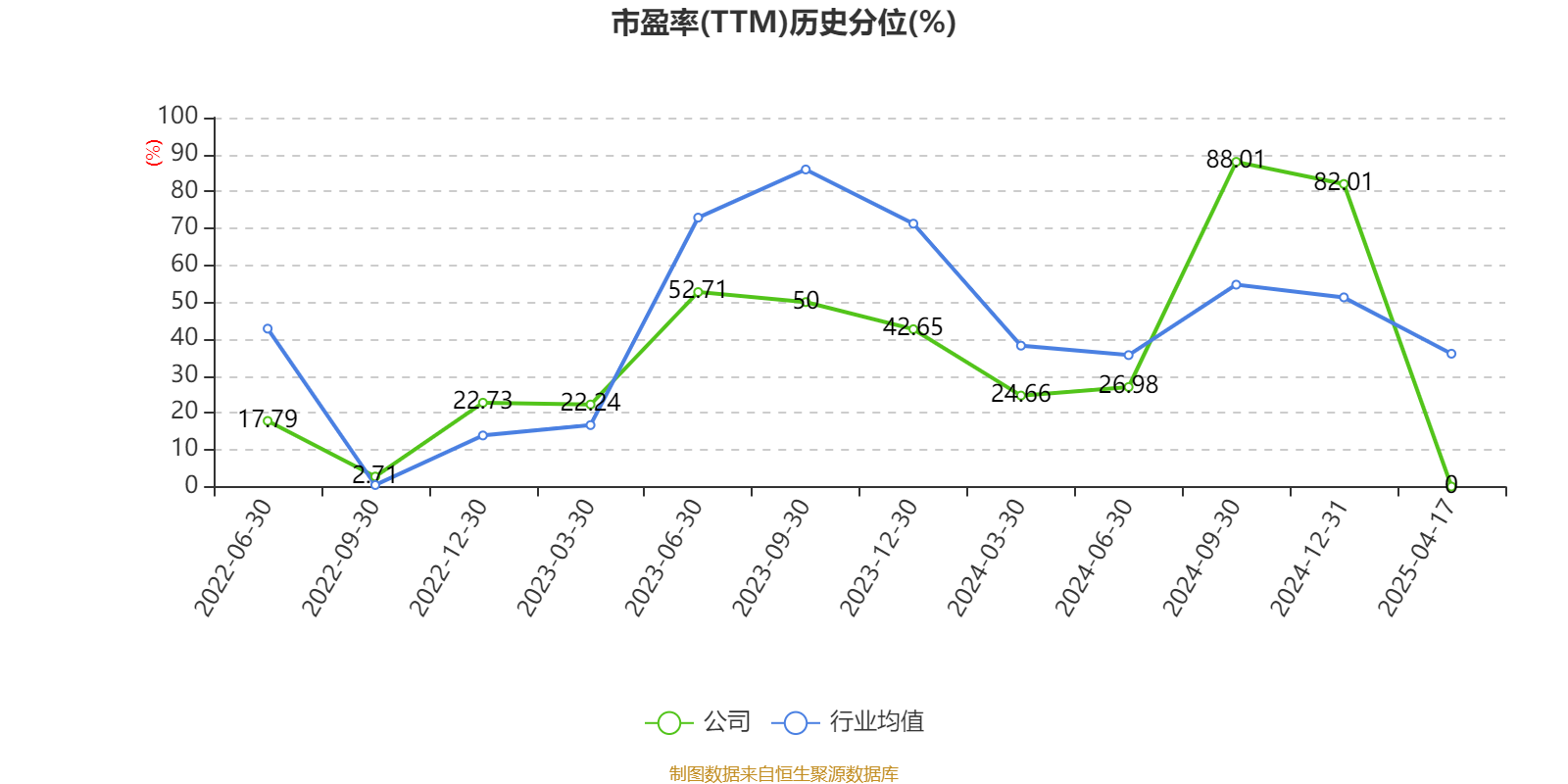 市盈率、市净率为负时,不显示当期分位数,会导致折线图中断。