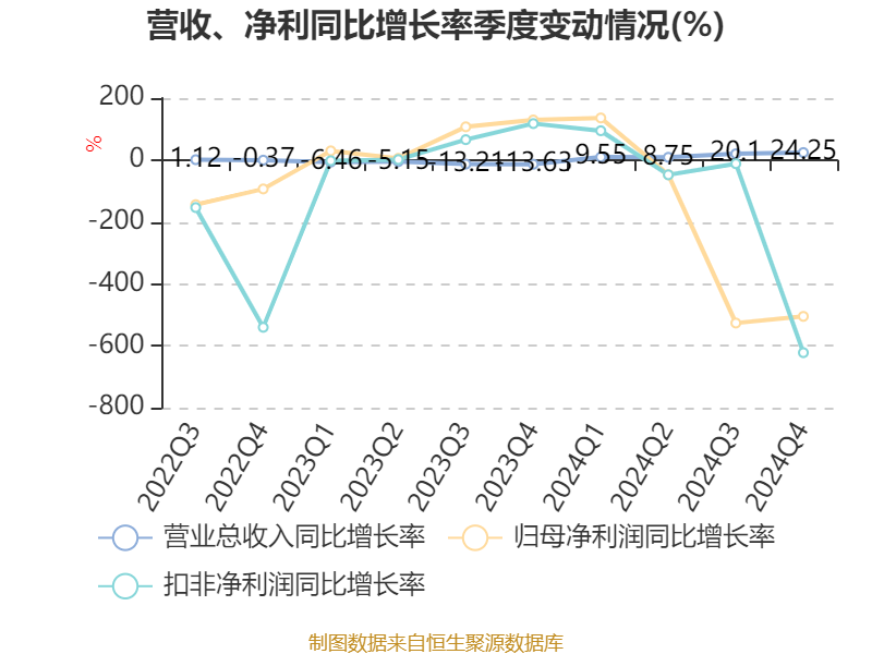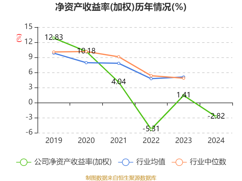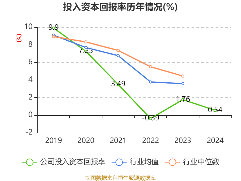 数据显示,2024年公司加权平均净资产收益率为-2.82%,较上年同期下降4.23个百分点。公司2024年投入资本回报率为0.54%,较上年同期下降1.22个百分点。