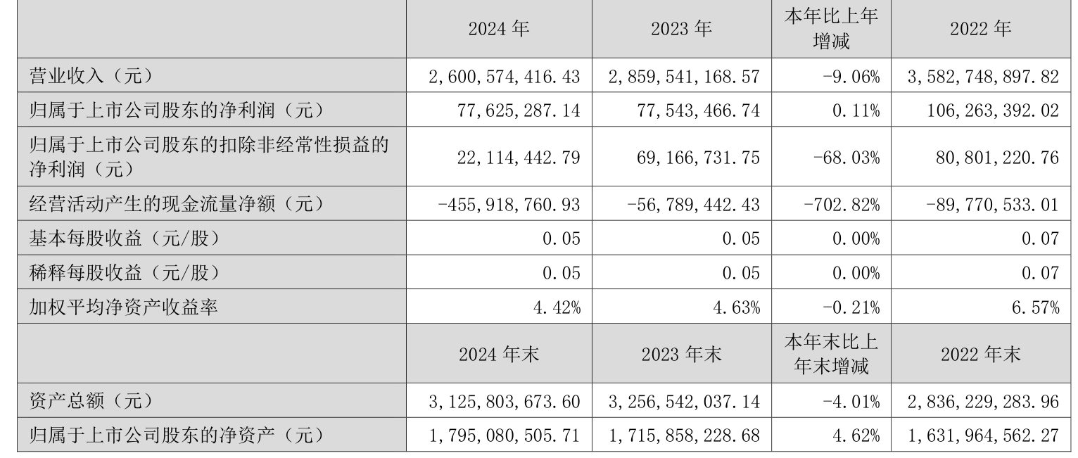 数据显示,2024年公司加权平均净资产收益率为4.42%,较上年同期下降0.21个百分点。公司2024年投入资本回报率为3.79%,较上年同期上升0.14个百分点。