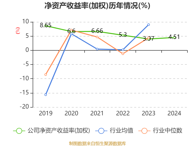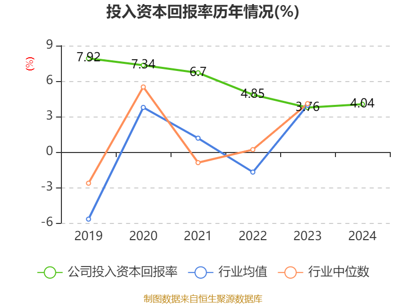 数据显示,2024年公司加权平均净资产收益率为4.51%,较上年同期上升0.54个百分点。公司2024年投入资本回报率为4.04%,较上年同期上升0.28个百分点。