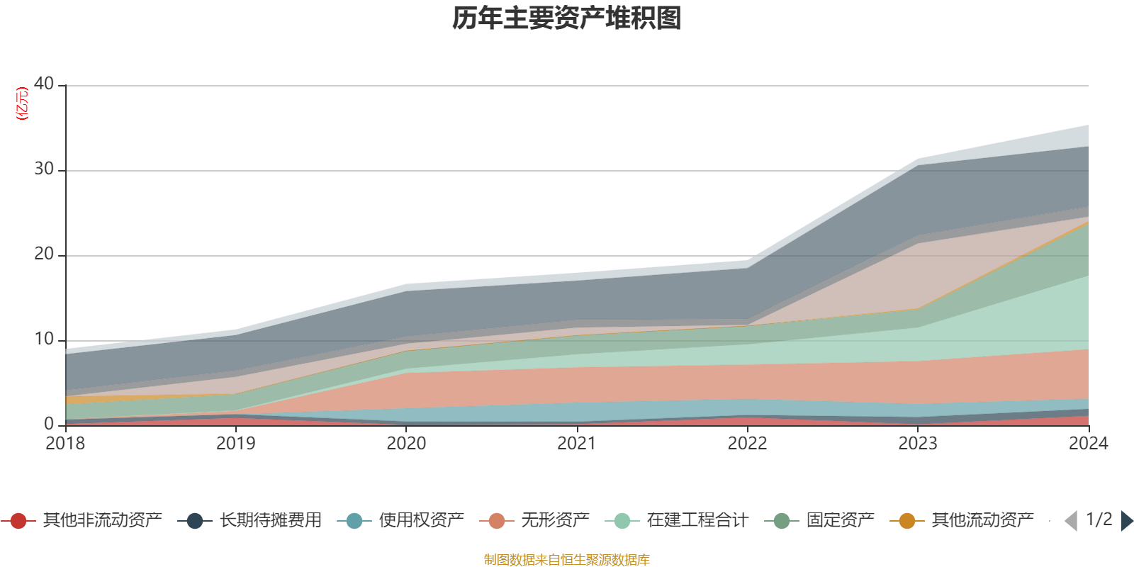 资产重大变化方面,截至2024年末,公司交易性金融资产合计较上年末减少93.42%,占公司总资产比重下降22.91个百分点;在建工程合计较上年末增加121.06%,占公司总资产比重上升12.03个百分点;固定资产较上年末增加184.34%,占公司总资产比重上升10.37个百分点;货币资金较上年末减少13.84%,占公司总资产比重下降6.17个百分点。