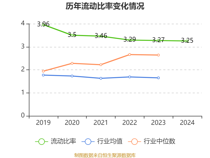 2024年,公司流动比率为3.25,速动比率为2.64。