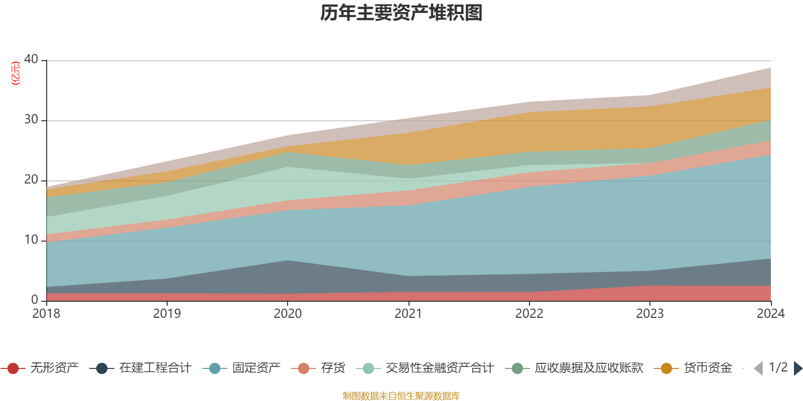 负债重大变化方面,截至2024年末,公司长期借款较上年末增加51.27%,占公司总资产比重上升1.89个百分点;一年内到期的非流动负债较上年末减少24.42%,占公司总资产比重下降1.36个百分点;长期递延收益较上年末增加0.32%,占公司总资产比重下降0.26个百分点;合同负债较上年末增加74.88%,占公司总资产比重上升0.15个百分点。