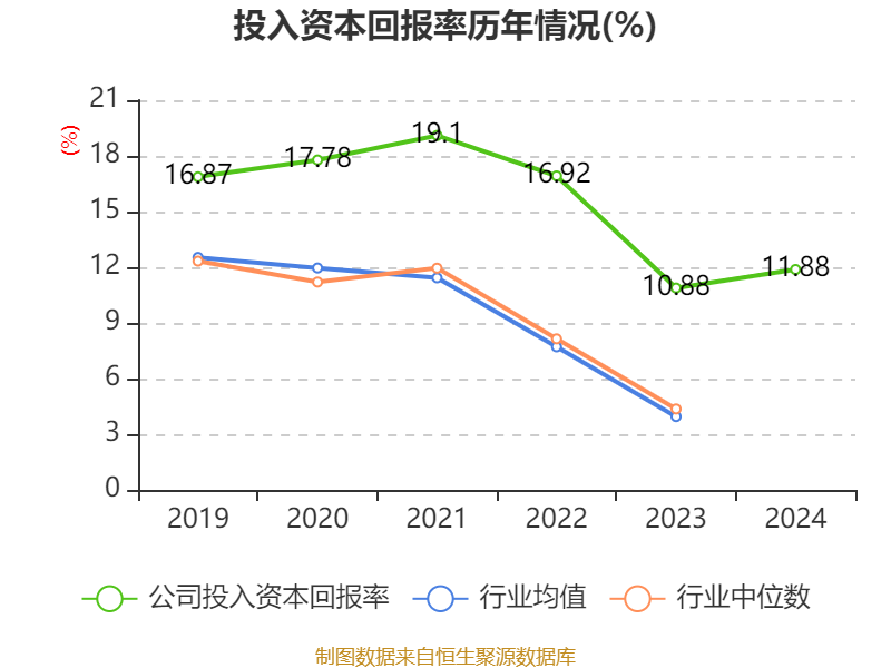 数据显示,2024年公司加权平均净资产收益率为13.66%,较上年同期上升1.31个百分点。公司2024年投入资本回报率为11.88%,较上年同期上升1个百分点。