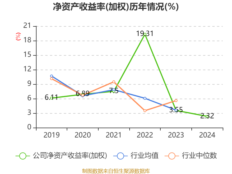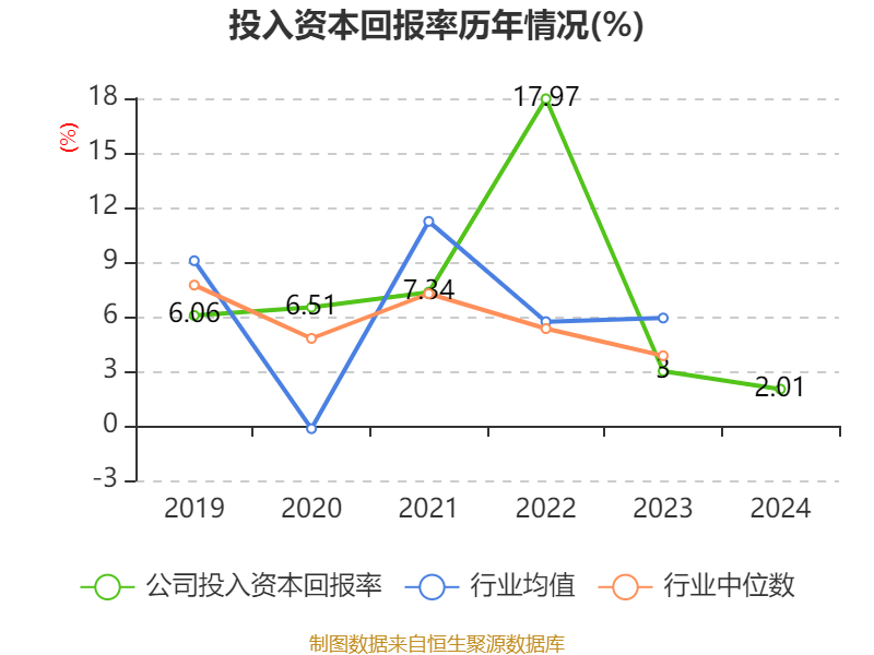 数据显示,2024年公司加权平均净资产收益率为2.32%,较上年同期下降1.23个百分点。公司2024年投入资本回报率为2.01%,较上年同期下降0.99个百分点。