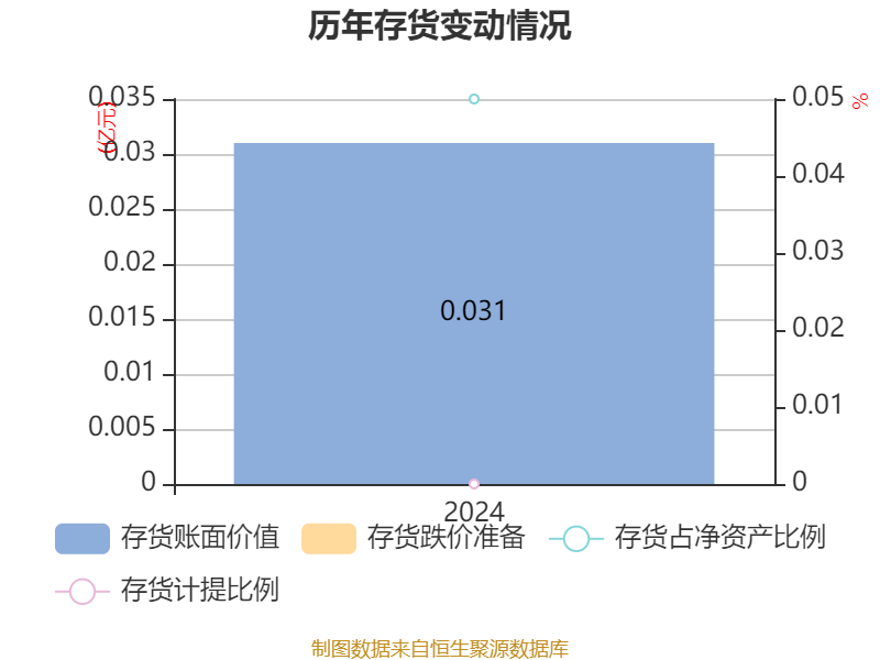 从存货变动来看,截至2024年末,公司存货账面价值为307.01万元,占净资产的0.05%,较上年末基本不变。公司本期没有计提存货跌价准备。