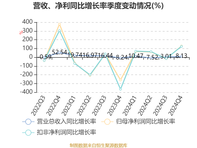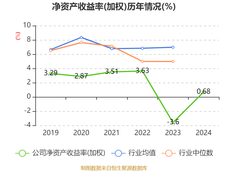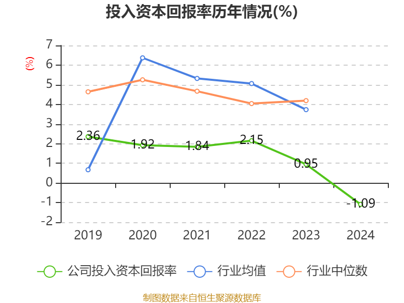 数据显示,2024年公司加权平均净资产收益率为0.68%,较上年同期上升4.28个百分点。公司2024年投入资本回报率为-1.09%,较上年同期下降2.04个百分点。
