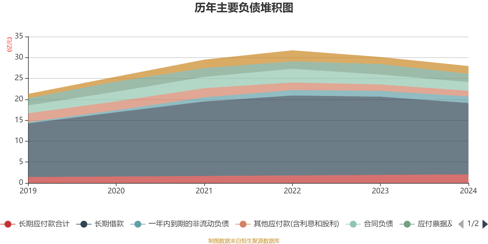 负债重大变化方面,截至2024年末,公司长期借款较上年末减少8.74%,占公司总资产比重下降1.52个百分点;应付票据及应付账款较上年末减少20.62%,占公司总资产比重下降0.93个百分点;一年内到期的非流动负债较上年末增加12.38%,占公司总资产比重上升0.6个百分点;长期应付款合计较上年末增加6.61%,占公司总资产比重上升0.56个百分点。