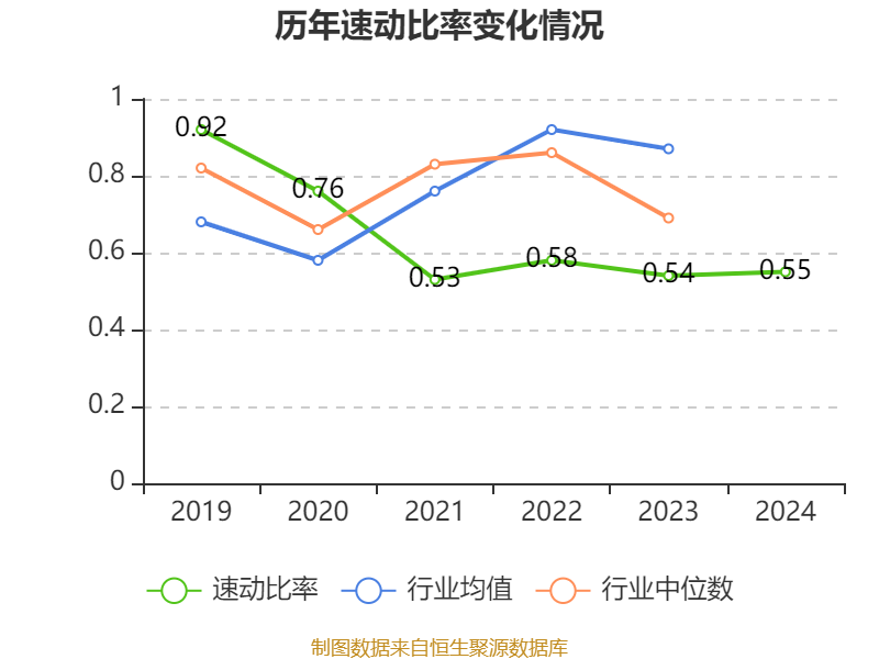 2024年,公司流动比率为0.58,速动比率为0.55。