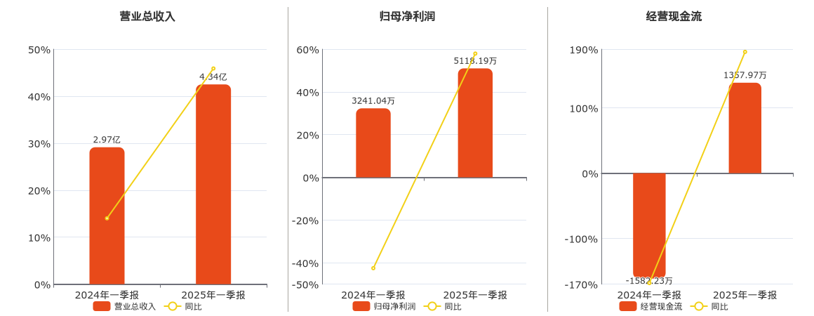公司营业总收入为4.34亿元。归母净利润为5118.19万元。经营活动现金净流入为1357.97万元。
