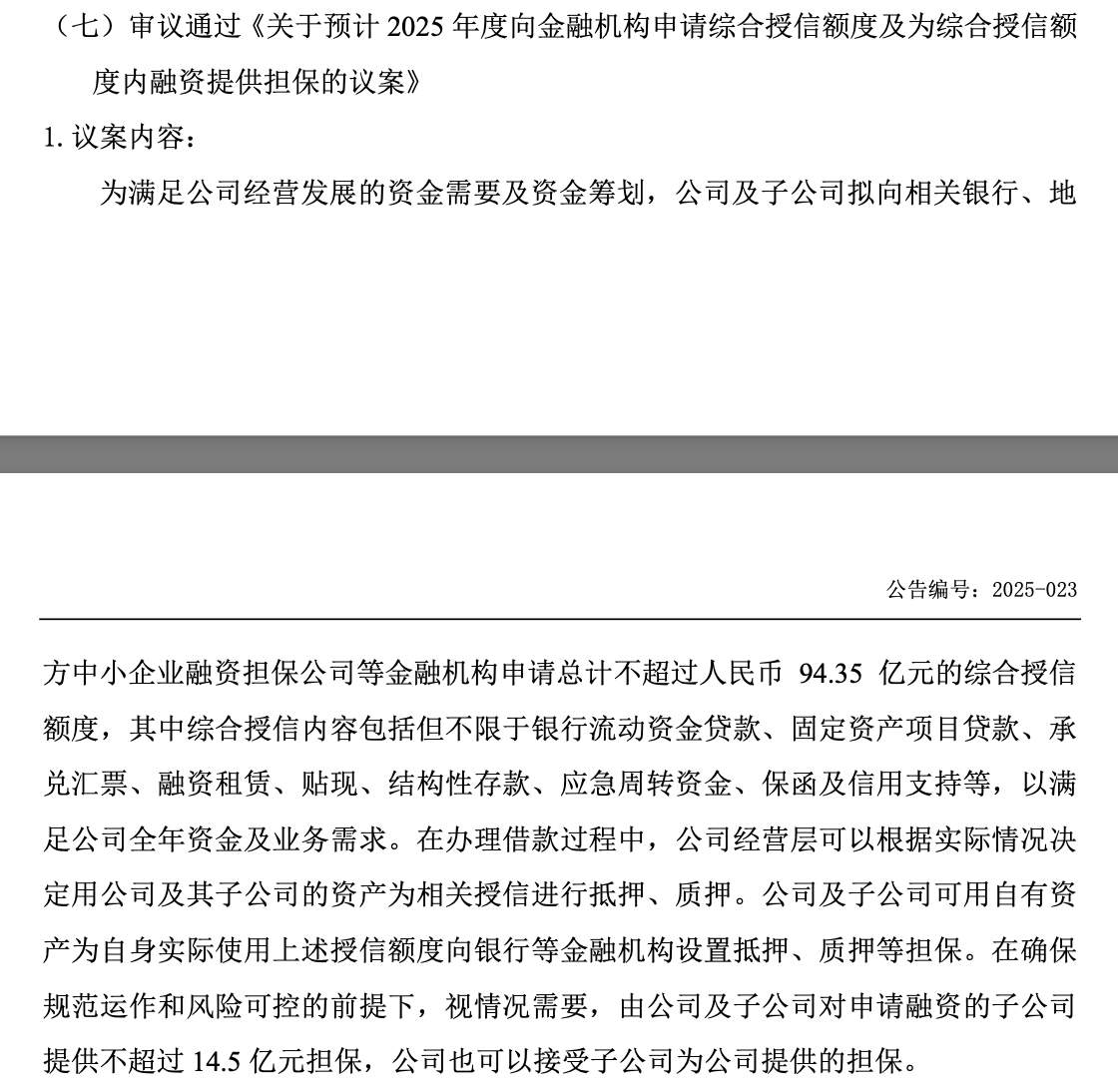 值得一提的是,北交所受理其IPO申请前两天,双英集团释放了一项筹资计划。预计2025年度向金融机构申请不超过94.35亿元的综合授信额度,包括但不限于银行流动资金贷款、固定资产项目贷款、融资租赁、贴现等,以满足公司全年资金及业务需求。