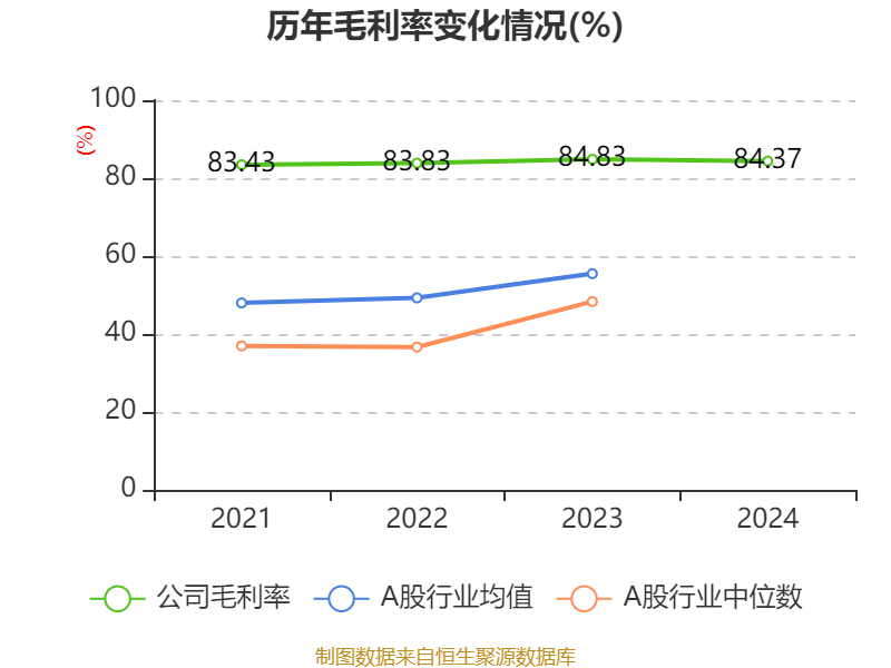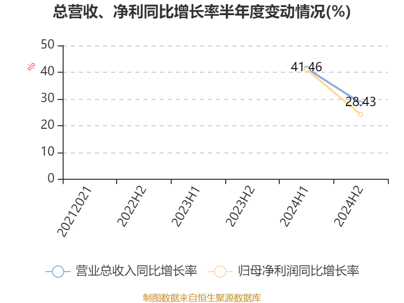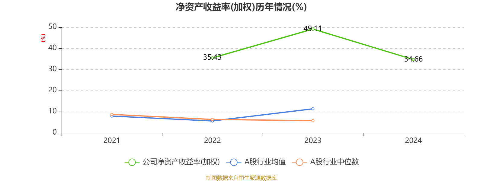 数据显示,2024年公司加权平均净资产收益率为34.66%,较上年同期下降14.45个百分点。