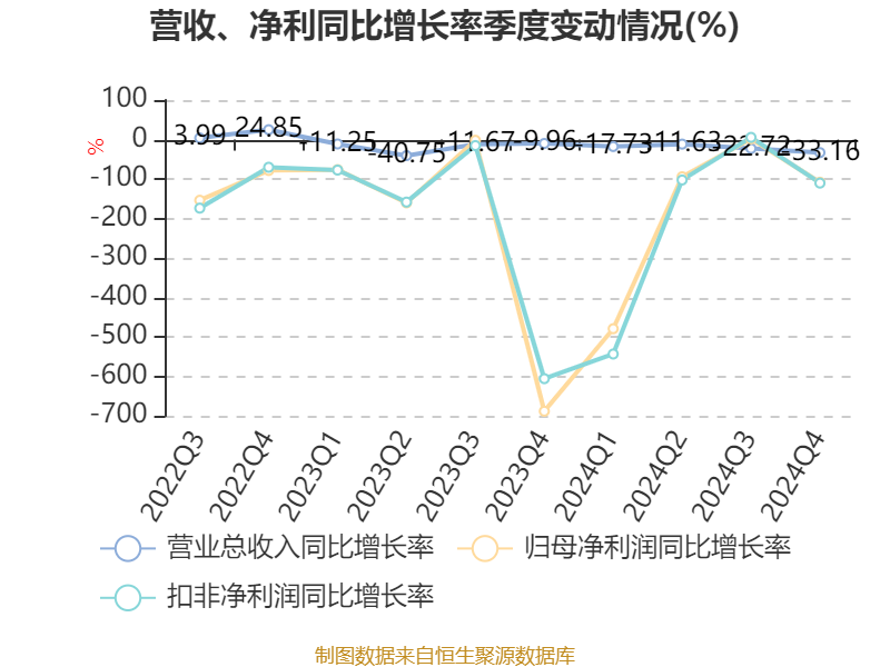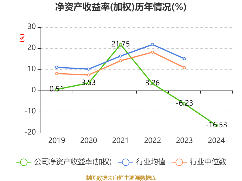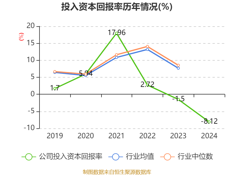 数据显示,2024年公司加权平均净资产收益率为-16.53%,较上年同期下降10.3个百分点。公司2024年投入资本回报率为-8.12%,较上年同期下降6.62个百分点。