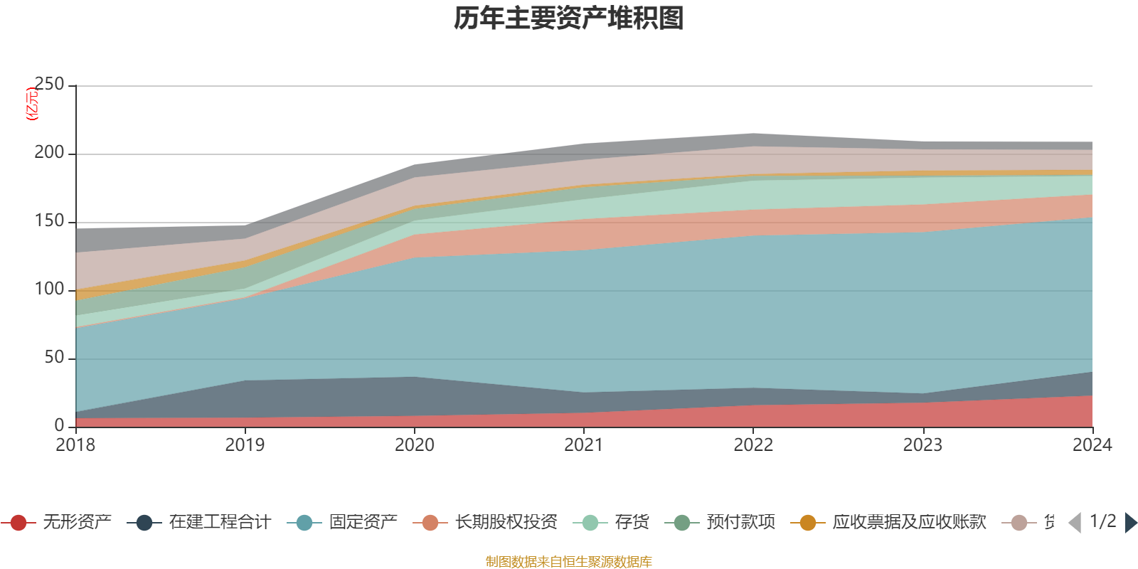 资产重大变化方面,截至2024年末,公司在建工程合计较上年末增加157.21%,占公司总资产比重上升5.11个百分点;存货较上年末减少30.88%,占公司总资产比重下降2.9个百分点;无形资产较上年末增加29.76%,占公司总资产比重上升2.51个百分点;固定资产较上年末减少4.11%,占公司总资产比重下降2.28个百分点。
