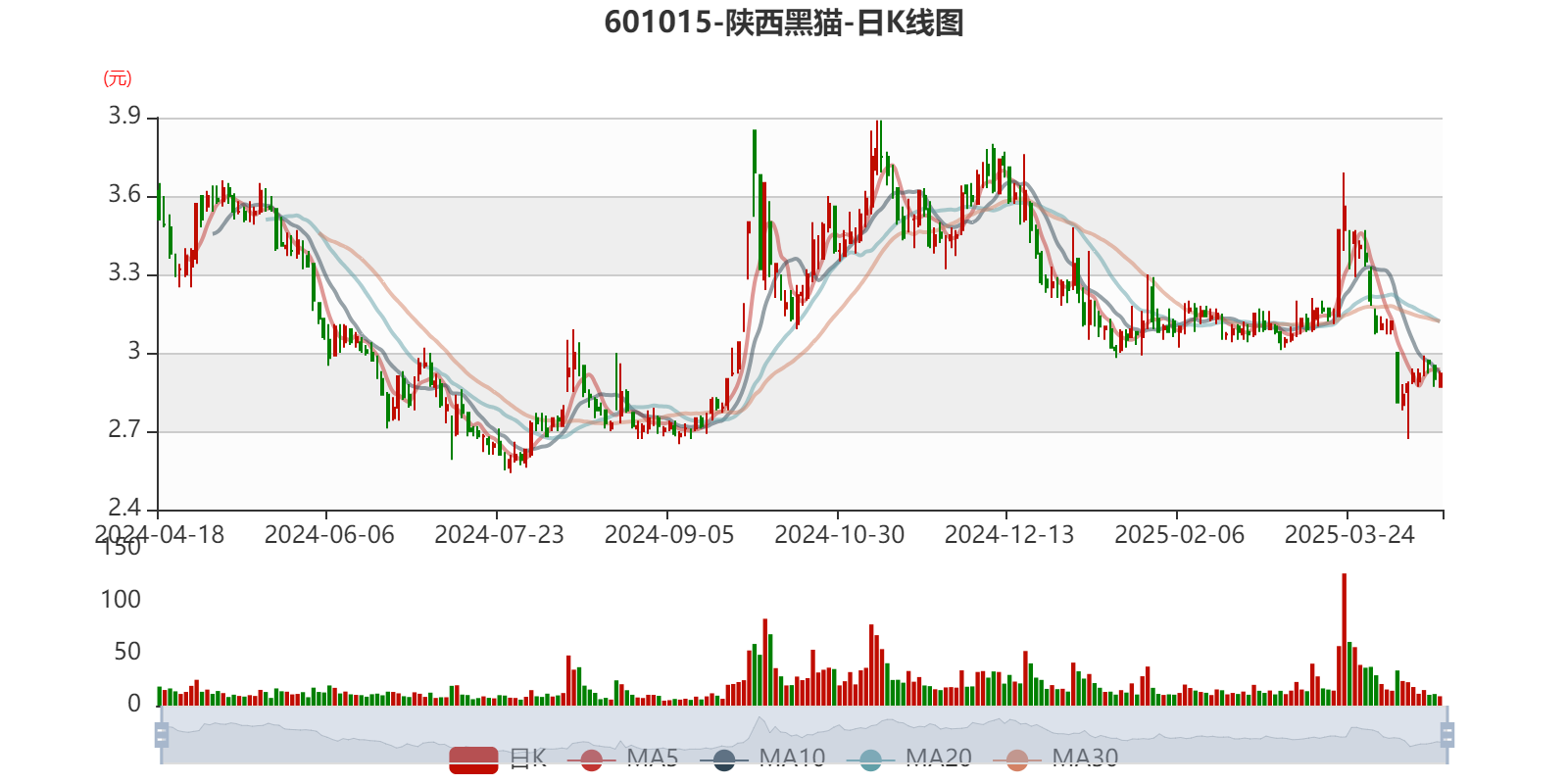 值得注意的是,中登公司数据显示,截至2025年4月11日,陕西黑猫26.93%股份处于质押状态。年报显示,第一大股东陕西黄河矿业(集团)有限责任公司质押4.57亿股公司股份,占其全部持股的49.56%;第三大股东李保平质押3723万股公司股份,占其全部持股的57.36%;第五大股东李光平质押3042万股公司股份,占其全部持股的100%。