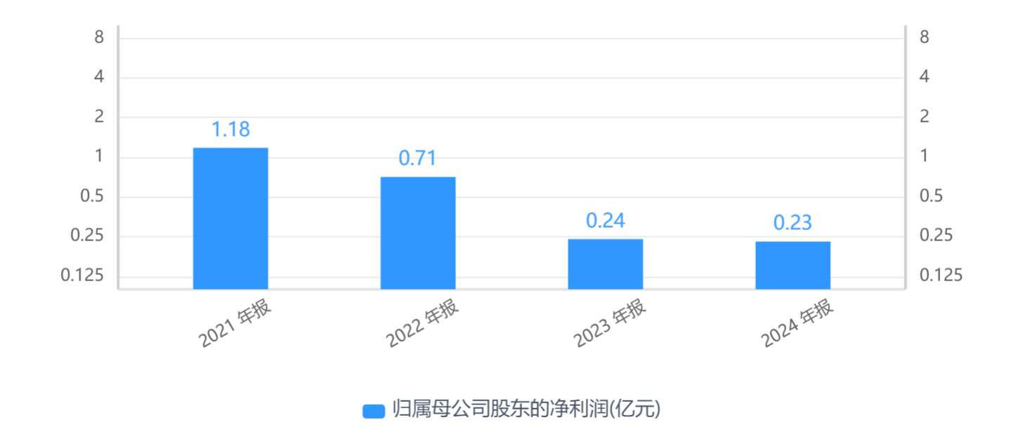 纵观历年业绩,乐山电力净利润已连续三年下滑。2021年至2023年,公司归母净利润分别为1.18亿元、0.71亿元、0.24亿元,同比变动14.71%、-39.99%、-65.57%。