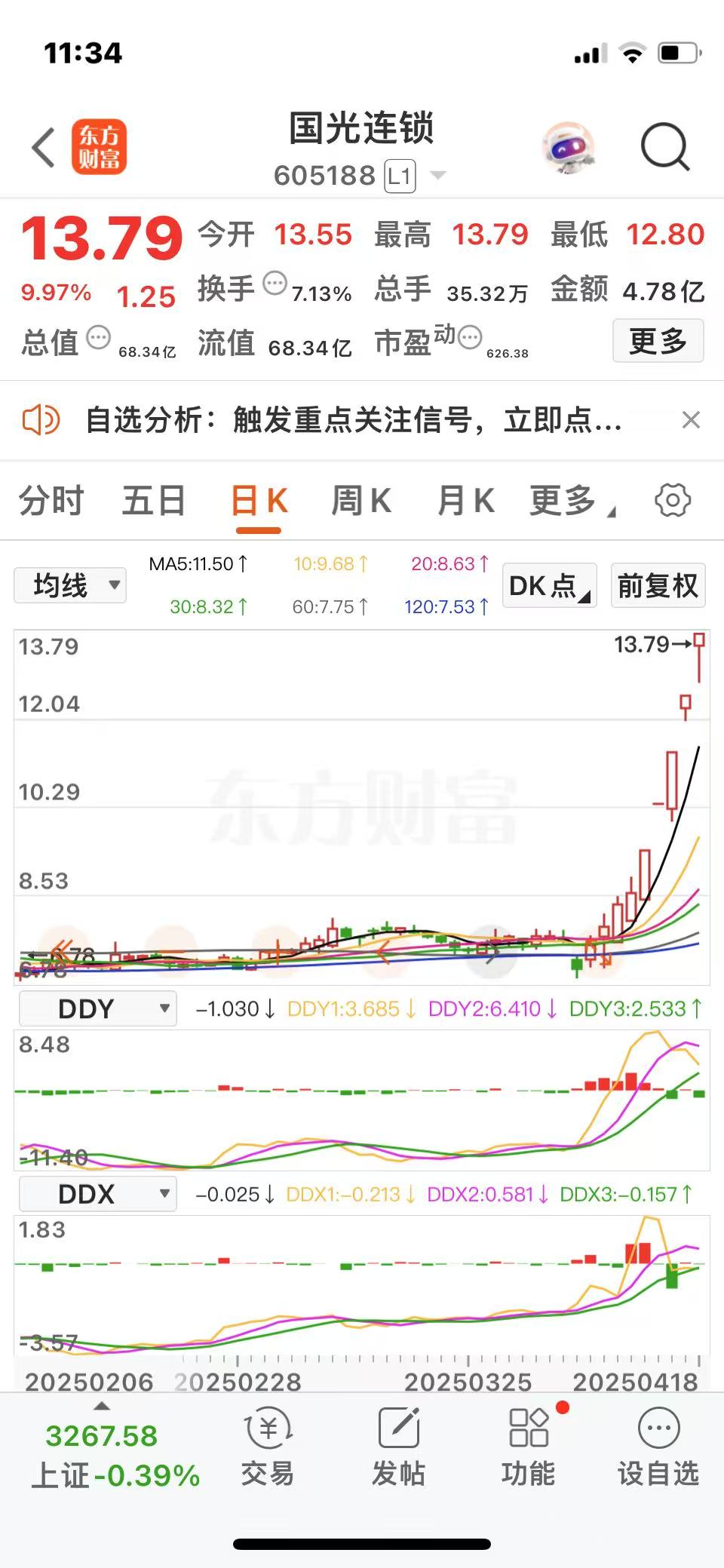记者注意到,国光连锁从4月7日起股价一直在上涨。4月18日,国光连锁盘中涨停,已连收5个涨停板,截至上午收盘,该股报13.79元,换手率1.79%,成交量889.44万股,成交金额1.21亿元,涨停板封单金额为6744.96万元。