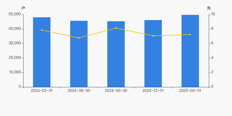 截至2025年3月31日,公司最新总股本为9.35亿股,其中流通股本为6.65亿股。户均持有流通股数量由上期的1.44万股下降至1.34万股,户均流通市值9.68万元。
