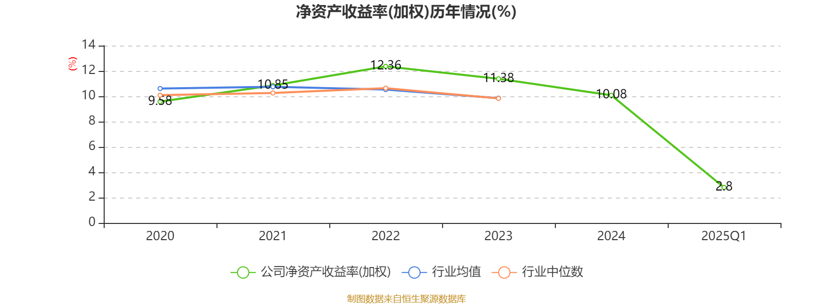 盈利能力方面, 2025年一季度公司加权平均净资产收益率为2.8%,同比下降0.35个百分点。
