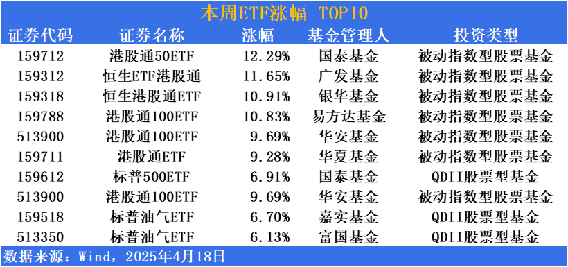 具体来看,港股通相关ETF领跑榜单。港股通50 ETF (159712)、恒生ETF港股通(159312)、恒生港股通ETF(159318)、港股通100ETF(159788)均涨超10%