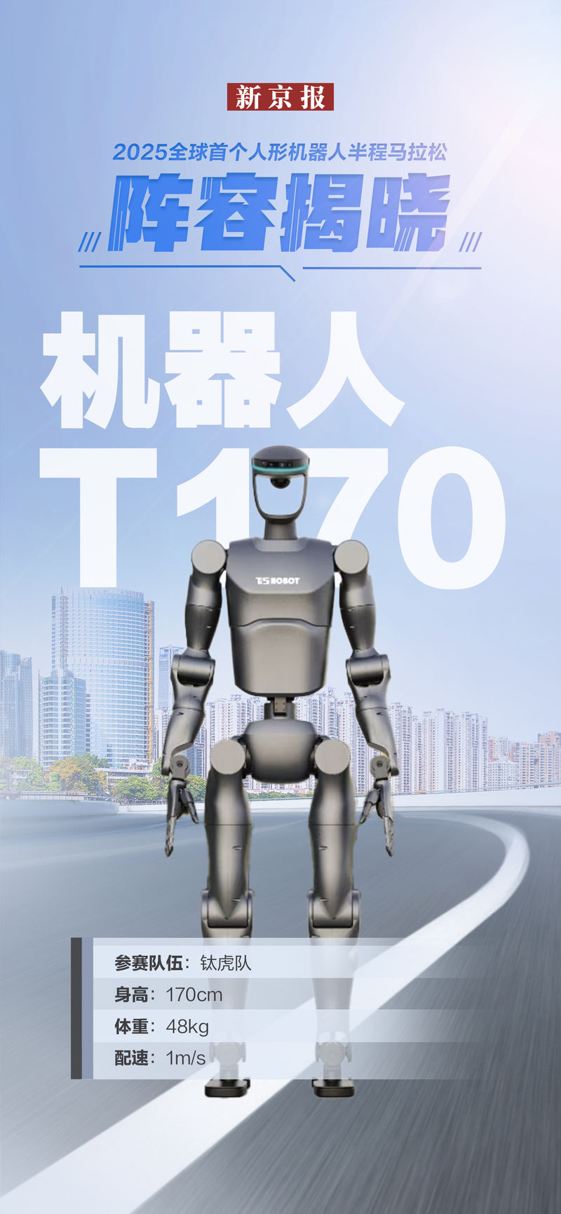 钛虎队此次参加亦庄人形马拉松比赛的机器人为T170,身高170cm,体重48kg,配速1m/s。