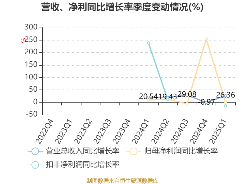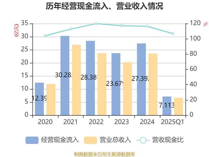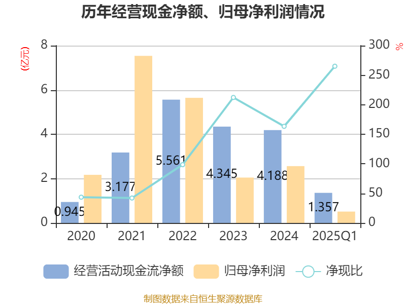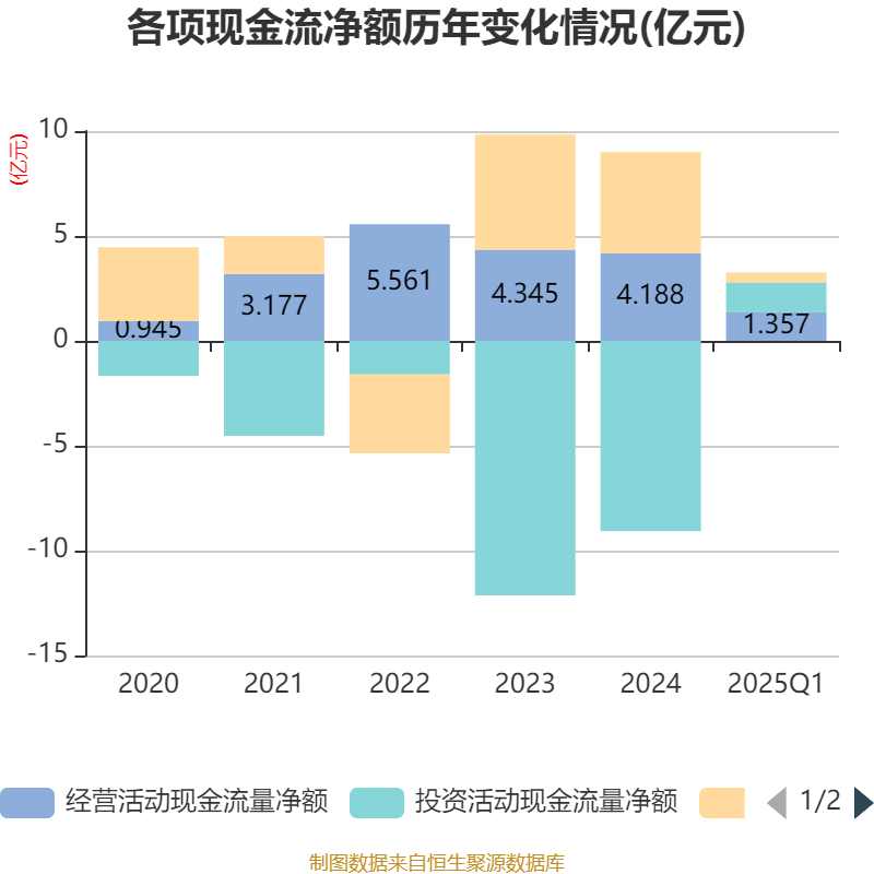 截至2025年一季度末,公司经营活动现金流净额为1.36亿元,同比增长51.19%;筹资活动现金流净额4638.72万元,同比减少5.8亿元;投资活动现金流净额1.43亿元,上年同期为3039.81万元。