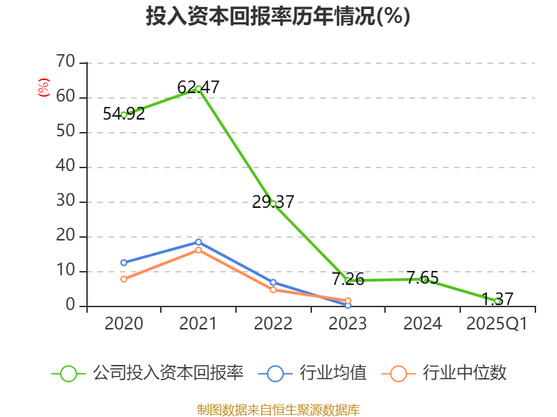 盈利能力方面, 2025年一季度公司加权平均净资产收益率为1.71%,同比下降0.38个百分点。公司2025年第一季度投入资本回报率为1.37%,较上年同期下降0.13个百分点。