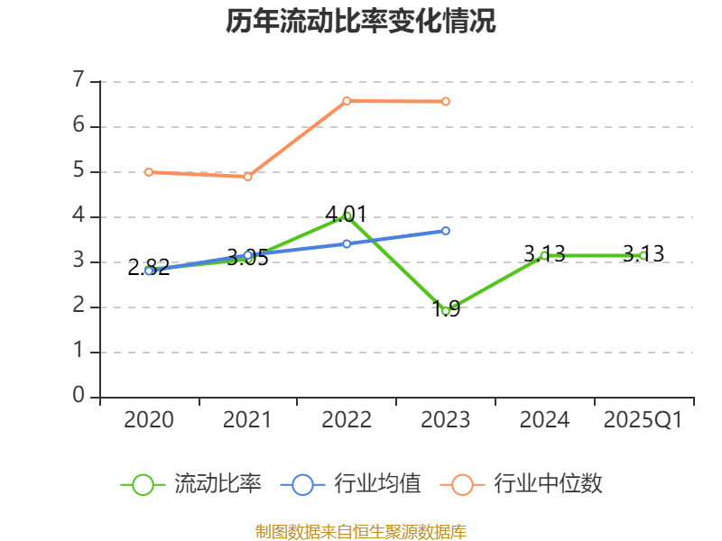 2025年第一季度,公司流动比率为3.13,速动比率为2.4。