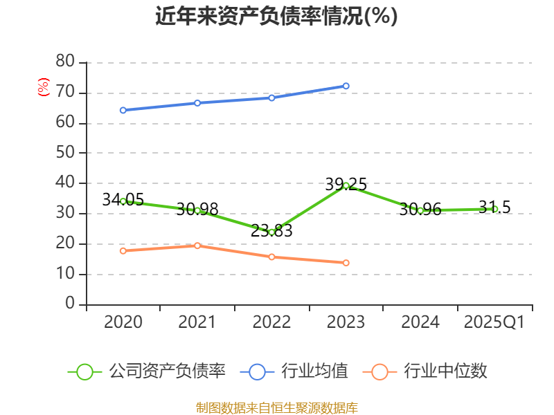 负债重大变化方面,截至2025年一季度末,公司应付票据及应付账款较上年末增加41.17%,占公司总资产比重上升1.58个百分点;应付职工薪酬较上年末减少33.38%,占公司总资产比重下降0.88个百分点;长期应付款合计较上年末减少57.52%,占公司总资产比重下降0.88个百分点;其他应付款(含利息和股利)较上年末减少39.48%,占公司总资产比重下降0.74个百分点。