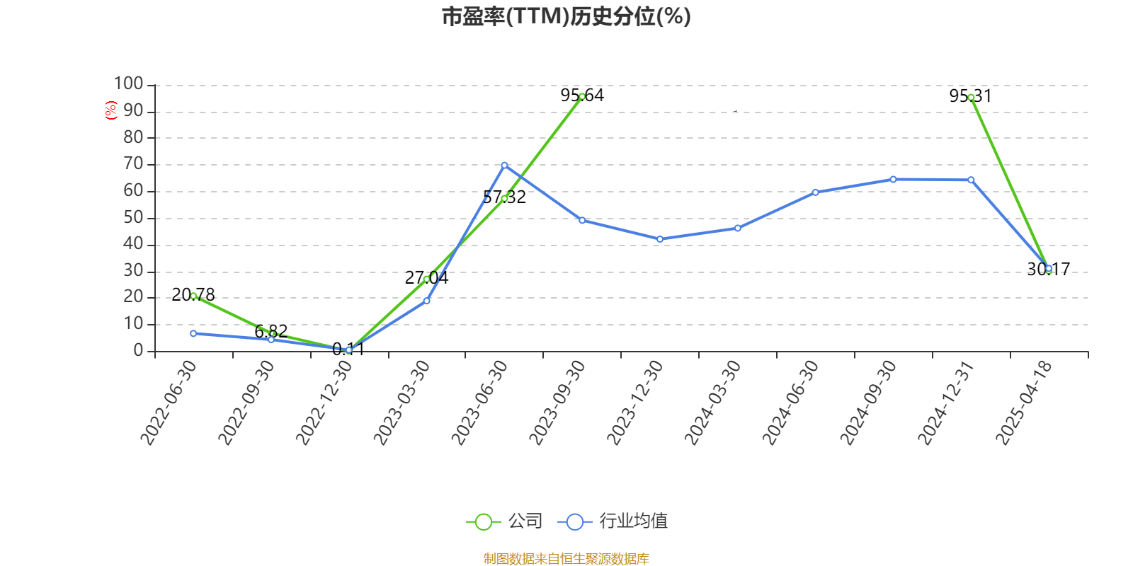 市盈率、市净率为负时,不显示当期分位数,会导致折线图中断。