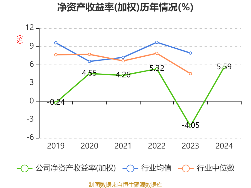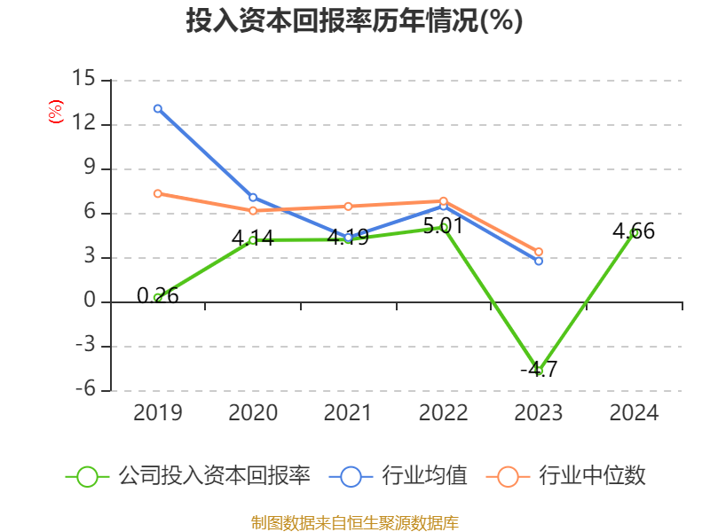 数据显示,2024年公司加权平均净资产收益率为5.59%,较上年同期上升9.64个百分点。公司2024年投入资本回报率为4.66%,较上年同期上升9.36个百分点。