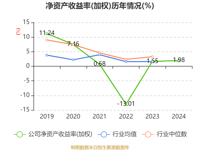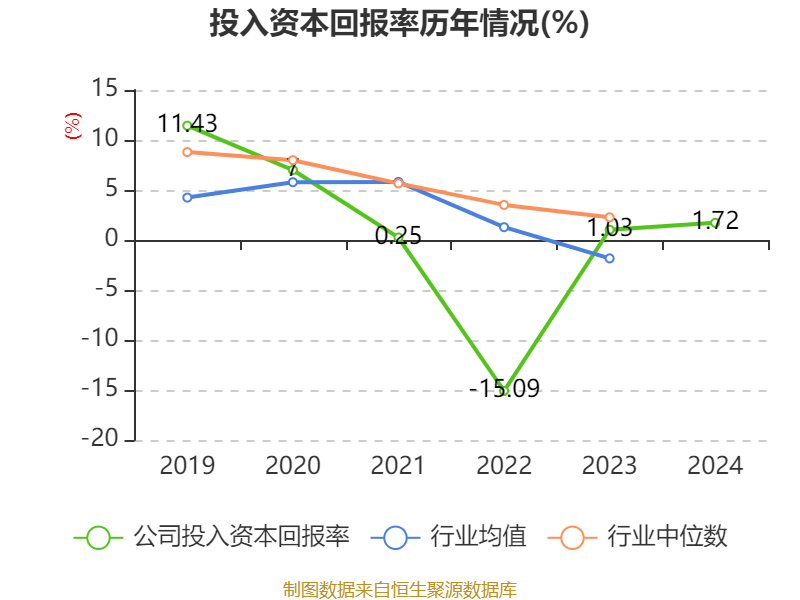 数据显示,2024年公司加权平均净资产收益率为1.98%,较上年同期上升0.33个百分点。公司2024年投入资本回报率为1.72%,较上年同期上升0.69个百分点。