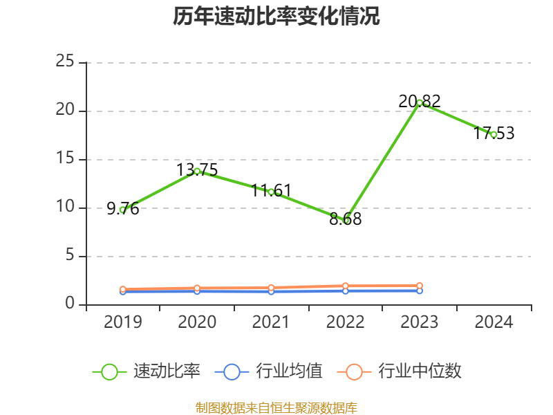 2024年,公司流动比率为17.74,速动比率为17.53。