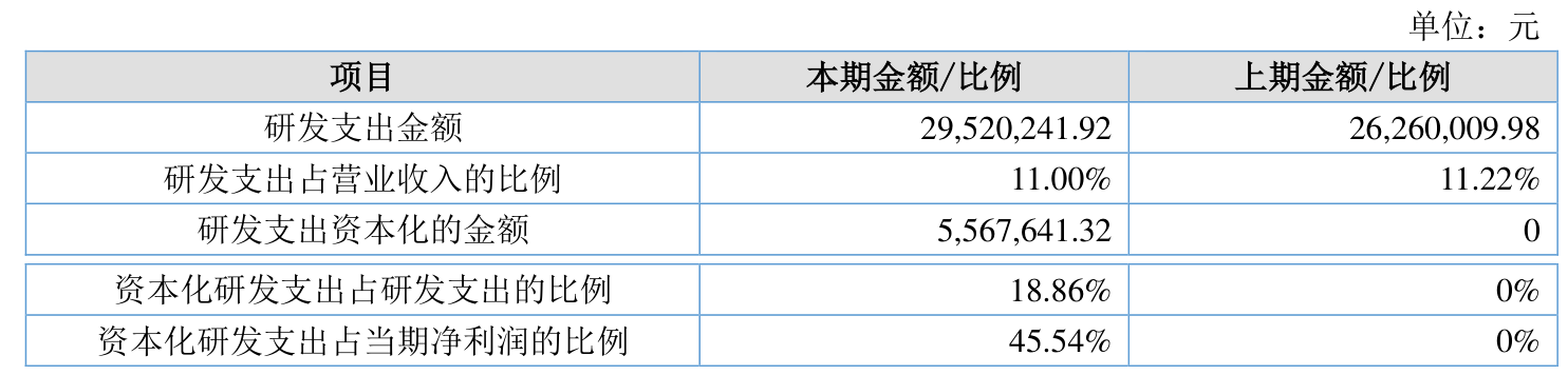 2024年全年,公司研发投入金额为2952.02万元,同比增长12.42%;研发投入占营业收入比例为11%,相比上年同期下降0.22个百分点。此外,公司全年研发投入资本化率为18.86%。