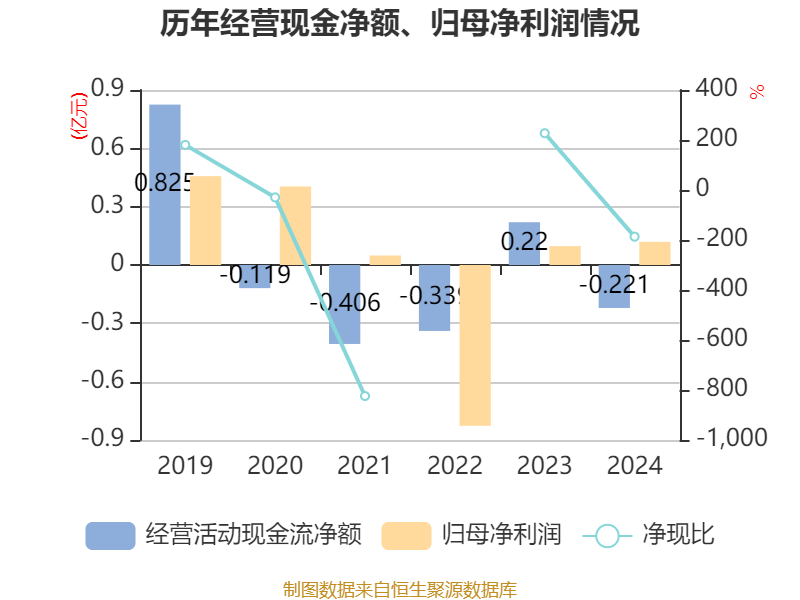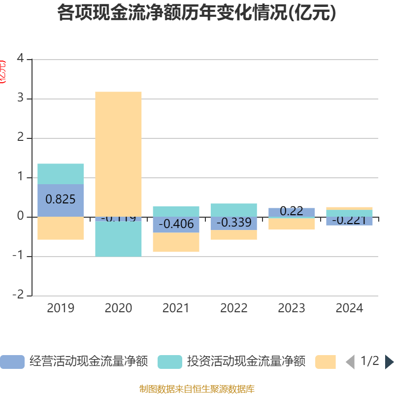 截至2024年,公司经营活动现金流净额为-2213.94万元,同比减少4416.89万元;筹资活动现金流净额671.58万元,同比增加3472.63万元;投资活动现金流净额1740.51万元,上年同期为-437.01万元。
